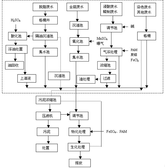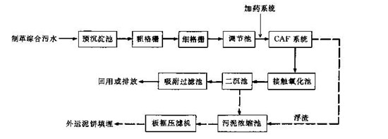 1、對于鉻鞣污水,采用以物化加藥處理為核心的處理工藝。預計經(jīng)加藥處理后,排水無色、澄清透明,可完全滿足回用要求;